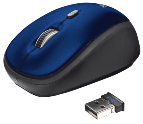 Trust Yvi Wireless Mouse - Blue, 8m 2.4GHz, Micro receiver, 800-1600 dpi, 4 button, Rubber sides for comfort and grip,USB
