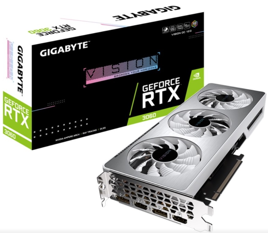 GIGABYTE GeForce RTX 3060 VISION OC 12G / 12GB GDDR6, 192bit, 1837/15000Mhz, 2xHDMI, 2xDP, Triple Fan, 3*80mm, WINDFORCE 3X Cooling, Alternate Spinning Fans, 3D Active Fan, Composite Cooper Heat Pipes, RGB Fusion, Metal Backplate, Retail