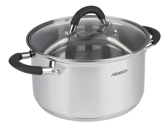 КастрюляArdestoGeminiSalerno,стекляннаякрышка,3.6л,серыеручкиссиликоном,нержавеющаясталь