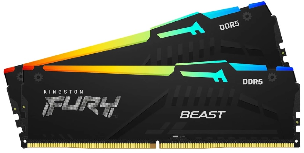 32GB (Kit of 2*16GB) DDR5-5200 Kingston FURY® Beast DDR5 RGB EXPO, PC41600, CL36, 1Rx8, 1.25V, Auto-overclocking, Asymmetric BLACK low-profile heat spreader, Dynamic RGB effects featuring HyperX Infrared Sync technology, AMD® EXPO v1.0 and Intel® Extreme