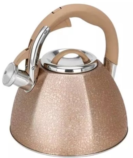 Fierbator de apa Fissman Goldy 5968 3l cu fluer Бренд: Fissman Тип: Чайник для плиты Объем: 3 л Материал корпуса: Нержавеющая сталь Материал ручки: Бакелит Цвет: Золотистый Подходит для плит: Газовая, Индукционная, Стеклокерамика, Электрическая Особенности: Свисток Высота: 24 см Ширина: 23,5 см Глубина: 22 см