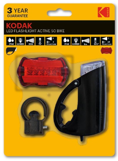 Kodak 30423565 LED active 50 bike lights 3-50 люмен Идеально подходит для велосипедов Устойчивость к атмосферным воздействиям (IP44) 5-30 м Расстояние 7-30 часов работы от батареи Батареи не включены