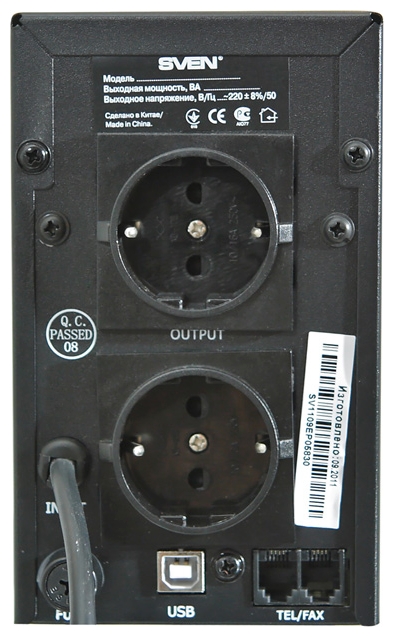 SVEN Pro+ 800, Line-interactive UPS with AVR, 800VA /480W, 2x Schuko outlets, 1x9AH, AVR: 165-275V, Cold start function, Black