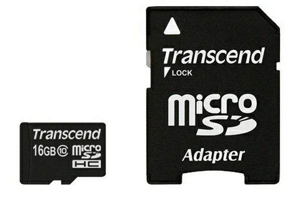 16GB MicroSDHC (Class 10), SD adapter, Transcend "TS16GUSDHC10" (R/W:20/16MB/s)
