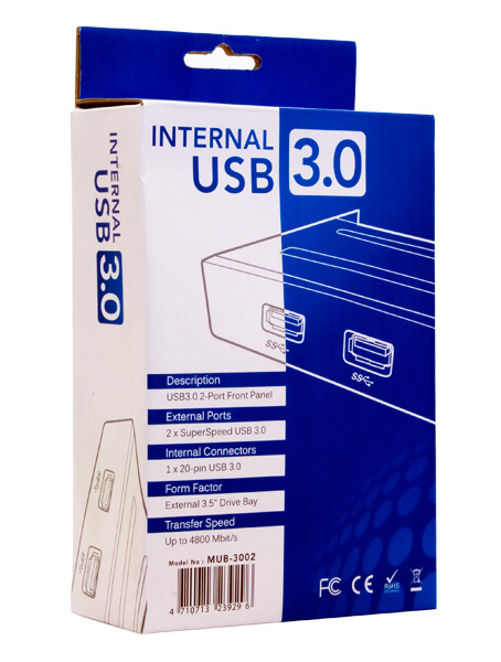 Case Front Panel Chieftec MUB-3002 with 2xUSB3.0 Interface: 3.5"/ USB 3.0 Onboard sockets/Data transfer rate:up to 5 GBit/s (USB 3.0 Super-Speed)/Power Connector