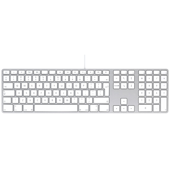 Apple Keyboard with numeric keypad - International English, MB110Z/B Клавиатура Apple с цифровой клавиатурой отличается элегантным, ультратонкий корпус из анодированного алюминия с низкопрофильные клавиши, которые обеспечивают четкое, отзывчивый чувство. Она также имеет функциональные клавиши для доступа одним нажатием к целому ряду функций Mac, таких как яркость экрана, громкость, извлечение, воспроизведение / пауза, быстрая перемотка вперед и назад, управления полетами и Launchpad. Его расширенная планировка включает в себя элементы навигации документа - страница вверх, страница вниз, домой, а конец - и клавиши со стрелками, полноразмерными для игр и прокрутки документов. Его цифровая клавиатура идеально подходит для электронных таблиц и финансовых приложений. И два порта USB 2.0 позволяют подключить мышь, а также высокоскоростной периферийный, такие как цифровой фотоаппарат или принтер. Тип подключения проводной Интерфейс USB Количество клавиш 109 Количество дополнительных клавиш 7 Цвет белый Размеры (ШxВxГ) 460х135х28 мм Вес 0.76 г Два порта USB 2.0; Ультратонкий дизайн Производитель Apple