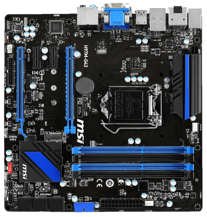 Motherboard MSI H97M-G43 S1150, iH97, MilitaryClass4, SATA-III, USB3.0, CPU-Graphics+HDMI, DVI, D-Sub, DP, GLAN, 4DDRIII-12800, ALC892-7.1Sound, 2*P