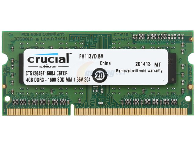 Детали Вместимость 4ГБ Тип 204-Pin DDR3 SO-DIMM скорость DDR3L 1600 (PC3L 12800) Cas Latency 11 напряжение 1,35 ECC Нет Буферизированный / регистрации Unbuffered рассеиватель тепла Нет