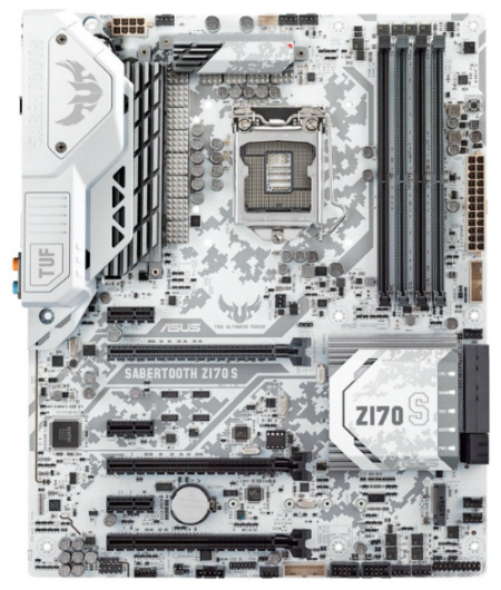 ASUS SABERTOOTH Z170 S, Socket 1151, Intel® Z170, Dual 4xDDR4-2400, 3xPCIe X16, CPU Intel graphics, HDMI, DisplayPort, 6xSATA3, RAID, 2x SATA Express, 1x M.2 slot, ALC1150 7.1ch HDA, GigabitLAN, 1xUSB3.1, 1xUSB3.1/Type-C, 6xUSB3.0, TUF, 24/7, ATX
