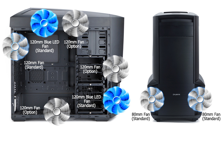 ZALMAN"Z11NEO"ATXCase,withSide-Window,withoutPSU,Tool-less,5fanspre-installed(2x120mmBlueLEDfan,1x120mmfan,2x80mmfan),TouchSlidingODDdoor,BottommountedPSU,2xUSB3.0,2xUSB2.0/Audio,Black