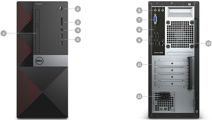 DELLVostro3650MTIntel®Core®i3-6100(DualCore,3.7GHz,3MB),4GbDDR3RAM,500GbHDD,DVDRW,Intel®HD530Graphics,Wi-Fi/BT4.0,PSU,MS116USBMouse,USBKB216Keyboard,Ubuntu14.04,Black