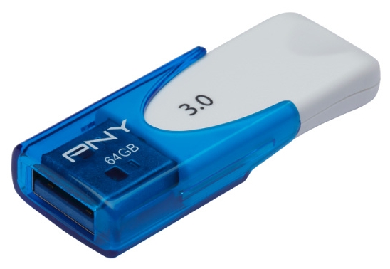 64GB USB3.0 PNY Attache 4 3.0 Blue/White, Sliding Design (Read 80 MByte/s, Write 20 MByte/s)