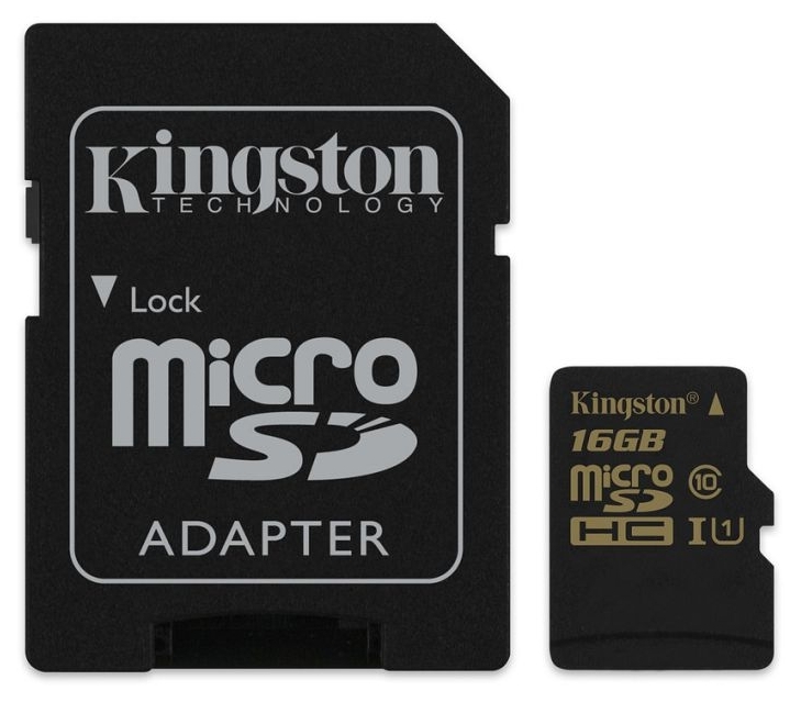 Kingston 16GB microSDHC Class10 UHS-I with SD adapter, 300x, Up to: 45MB/s