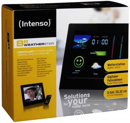 Intenso Digital PhotoFrame 8" WeatherStar, LCD TFT 4:3/16:9 (800x600), JPEG, 400:1, USB 2.0|SD|SDHC|MMC|MS, Remote Control, Clock/Calendar/Alarm, Plastic, Weather station (temperature internal/external/sensor up to 25m)