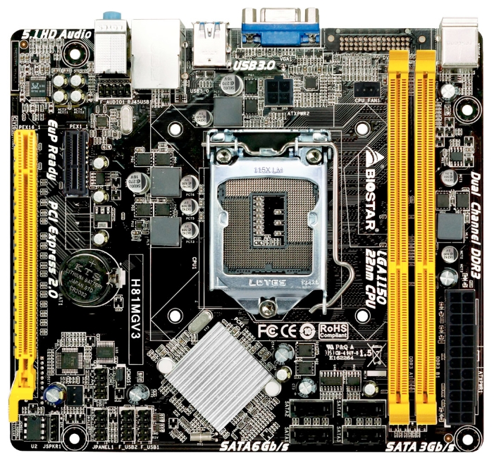 Motherboard Biostar H81MGV3 S1150, iH81, SATA-III, USB3.0, CPU-Graphics, GLAN, 2DDRIII-12800, COM+LPT, ALC622-6ch, PCI-Ex1, PCI-Ex16, mATX