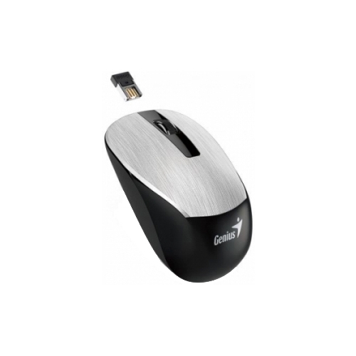(31030119105) Genius NX-7015 Silver, Metallic style, Wireless 2.4GHz Optical Mouse, Nano receiver, 800/1200/1600 dpi, Extends battery life up to 18 months, Battery Low Indicator, Rubber hand grip, Slot receiver, USB, Silver
