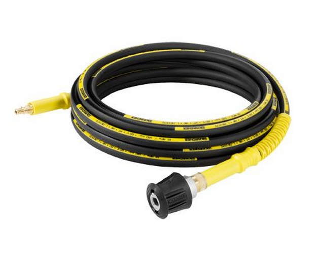 Увеличивает радиус действия аппарата высокого давления. Легко устанавливается между шлангом высокого давления и пистолетом с быстродействующим разъемом (начиная с 2008 г.). Прочный шланг НД 8 с текстильной оплеткой, защитой от перегиба и долговечным латунным соединительным элементом, пригодный для работы с чистящими средствами. Выдерживает температуры до 60 °С, давление до 160 бар.