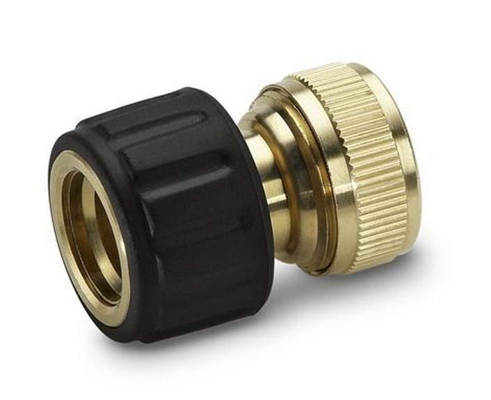 Коннектор быстросъемный латунный для шлангов 3/4. Накладка из мягкого полимера для повышения удобства и долговечности.