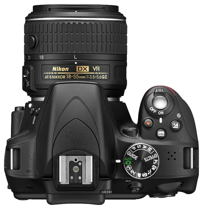 Камера Тип камеры зеркальная Объектив Поддержка сменных объективов байонет Nikon F Объектив в комплекте есть, модель уточняйте у продавца Матрица Общее число пикселов 24.7 млн Число эффективных пикселов 24.2 млн Размер APS-C (23.2 x 15.4 мм) Кроп-фактор 1.5 Максимальное разрешение 6000 x 4000 Тип матрицы CMOS Глубина цвета 36 бит Чувствительность 100 - 3200 ISO, Auto ISO Расширенные значения ISO ISO6400, ISO12800, ISO25600 Функция очистки матрицы есть Функциональные возможности Баланс белого автоматический, ручная установка, из списка Вспышка встроенная, до 12 м, подавление эффекта красных глаз, башмак, i-TTL Стабилизатор изображения (фотосъемка) отсутствует Режимы съемки Скорость съемки 5 кадр./сек Таймер есть Время работы таймера 2, 5, 10, 20 c Формат кадра (фотосъемка) 3:2 Видоискатель и ЖК-экран Видоискатель зеркальный (TTL) Использование экрана в качестве видоискателя есть Поле зрения видоискателя 95% ЖК-экран 921000 точек, 3 дюйма Экспозиция Выдержка 30 - 1/4000 с Выдержка X-Sync 1/500 c Ручная настройка выдержки и диафрагмы есть Автоматическая обработка экспозиции с приоритетом затвора, с приоритетом диафрагмы Экспокоррекция +/- 5 EV с шагом 1/3 ступени Замер экспозиции 3D цветовой матричный, центровзвешенный, точечный Брекетинг экспозиции есть Фокусировка Тип автофокуса фазовый Наличие "отвертки" нет Подсветка автофокуса есть Ручная фокусировка есть Электронный дальномер есть Фокусировка по лицу есть Память и интерфейсы Тип карт памяти SD, SDHC, SDXC Форматы изображения 3 JPEG, RAW Интерфейсы USB 2.0, видео, HDMI, аудио, разъем для пульта ДУ Питание Формат аккумуляторов свой собственный Количество аккумуляторов 1 Емкость аккумулятора 700 фотографий Запись видео и звука Запись видео есть Формат записи видео MOV Видеокодеки MPEG4 Максимальное разрешение роликов 1920x1080 Максимальная частота кадров видеоролика 60 кадров/с Максимальная частота кадров при съемке HD-видео 50/60 кадров/с при разрешениях 1280x720 и 1920x1080 Время записи видео 20 минут Оптический Zoom при записи видео есть Запись звука есть Другие функции и особенности Дополнительные возможности крепление для штатива, дистанционное управление, датчик ориентации Дополнительная информация вход для стереомикрофона Дата начала продаж 2014-02-01 Размеры и вес Размер 124x98x76 мм, без объектива Вес 430 г, без элементов питания