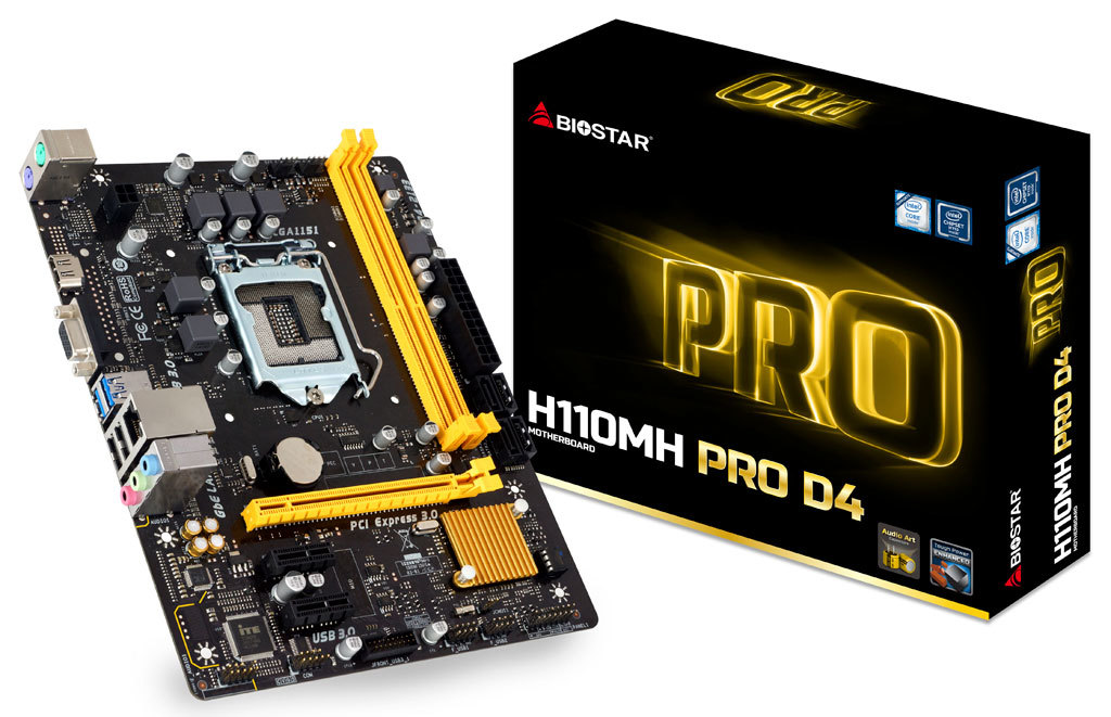 Biostar H110MH PRO D4, Socket 1151, Intel® H110, Dual 2xDDR4-2133, CPU Intel graphics, HDMI, 1xPCIe X16, 4xSATA3, 2xPCIe X1, ALC887 7.1ch HDA, Gigabit LAN, 4xUSB3.0, mATX