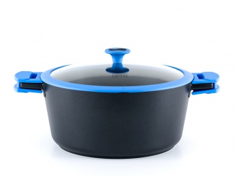 Кастрюля GIPFEL GP-2292 (4.0 л) 2292 GIPFEL Кастрюля MAGDA 24х12см/4,0л из литого алюминия с 3-слойным антипригарным покрытием Greblon C3, с индукционным дном, со стеклянной крышкой, со съемной бакелитовой ручкой c покрытием "Soft touch". Толщина 1,8/4,5мм. Цвет: черный/синий