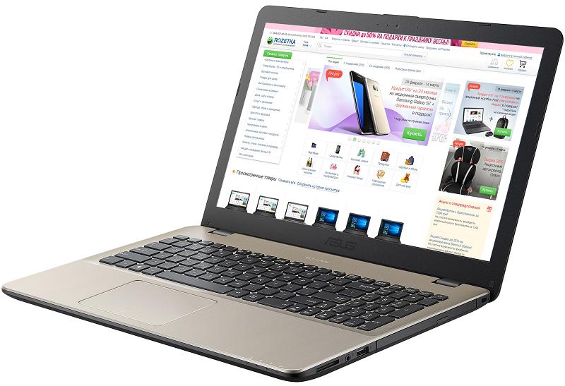 NB ASUS 15.6" X542UQ Gold (Core i5-7200U 8Gb 1Tb)15.6" Full HD (1920x1080) Non-glare, Intel Core i5-7200U (2x Core, 2.5GHz - 3.1GHz, 3Mb), 8Gb (1x 8Gb) PC4-17000, 1Tb 5400rpm, GeForce 940MX 2Gb, HDMI, DVD-RW, Gbit Ethernet, 802.11ac, Bluetooth, 1x USB 3.1