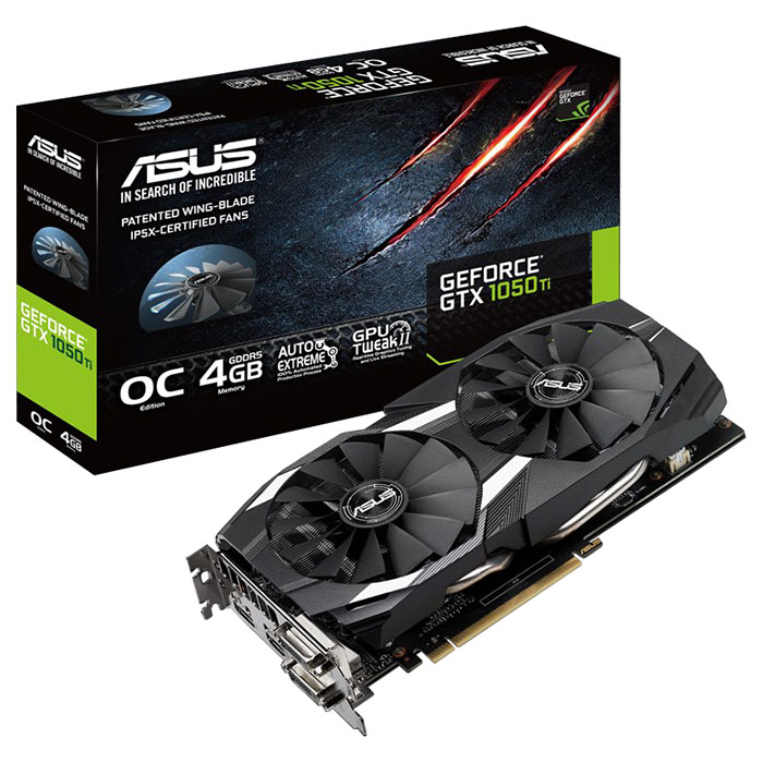 Видеокарта ASUS GTX1050TI-DC2O4G, GeForce GTX1050Ti 4GB GDDR5