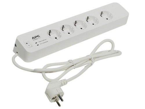 Surge Protector APC Essential PM5V-RS, 5 Sockets, 230V, Input power 2300W, Max Input Current 10A, Peak Current 24.0 kA, Surge energy rating 918 joules, Coaxial cable for CATV/SATV/modem/Audio-Video, 1.83m, White APC Essential SurgeArrest, 5 розеток, 230 В Защита при катастрофических аварияхСетевые фильтры SurgeArrest, выполненные на основе металло-оксидных варисторов и плавких предохранителей, мгновенно реагируют на грозовые разряды и короткие замыкания в электропроводке. При повреждении сетевого фильтра вследствие воздействия импульсного перенапряжения, указанное перенапряжение не попадает на оборудование. В отличие от устройств APC SurgeArrest большинство ограничителей перенапряжений остаются после повреждения цепи в проводящем состоянии, подвергая оборудование воздействию других опасных перенапряжений.Фильтрация электромагнитных помех и радиочастотного шумаУменьшение уровня шума в линии, который может приводить к потере данных и ошибкам при вводе с клавиатуры.Рейтинги пропускания IEEE и соответствие требованиям органов государственного регулированияРезультаты строгого независимого тестирования позволяют с уверенностью утверждать, что ограничители импульсных помех APC надежно защищают оборудование и данные от угрозы повреждения.индикатор активности защитыСетевой фильтр SurgeArrest оснащен светодиодом, сигнализирующим о повреждении внутренних цепей в результате сильного удара или вследствие воздействия импульсного перенапряжения в питающей сети, а также в случае, если фильтр не может обеспечить 100-процентную защиту. В период действия гарантии такое предупреждение является основанием для бесплатной замены поврежденного устройства SurgeArrest.Многоразовый автоматический предохранительПростая процедура восстановления после перегрузки; замена предохранителя не требуется.Вилка с отходящим под прямым углом проводомСкошенная форма вилки позволяет располагать оборудование и мебель ближе к стенам, чем при использовании стандартных сетевых шнуров. А кроме того, это уменьшает изгибные нагрузки на шнур.
