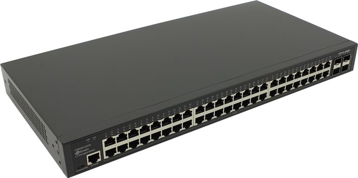 TP-LINK T2600G-52TS, JetStream™ 48-port Pure-Gigabit L2 Managed Switch, 48 10/100/1000Mbps RJ45 ports including 4 combo SFP slots, Port/Tag/MAC/Voice/Protocol-based VLAN, GVRP, STP/RSTP/MSTP, IGMP V1/V2/V3 Snooping, L2/L3/L4Traffic Classification