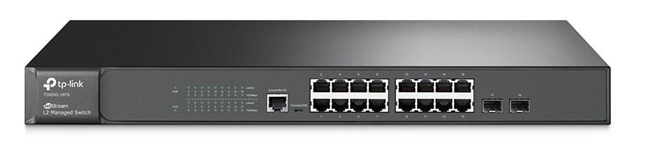 "16-portGigabitSwitchTP-LINK""T2600G-18TS"",2xSFPexpansionslot16GigabitRJ45Portsand2GigabitSFPSlotsSelectableRJ45orMicro-USBConsolePortL2+feature——StaticRouting,helpsrouteinternaltrafficformoreefficientuseofnetworkre
