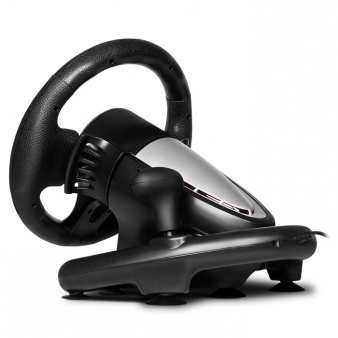 Wheel SVEN GC-W800 - http://www.sven.fi/ru/catalog/gaming_wheel/gc-w800.htm 2 вибромотора Диаметр руля – 10” Угол поворота – 180 градусов Поддержка: Windows XP/Vista/7/8/10/USB, PS3, PS4 и XBox One Интерфейс USB Программируемые кнопки Функция виброотдачи для повышения реалистичности Две оси, 8-позиционный джойстик D-Pad, рычаг переключения передач «Tiptronic», 12 дополнительных клавиш Резиновые вставки в руле для комфортного вождения Резиновые присоски и скоба для надежной фиксации к столу Работа в цифровом и аналоговом режимах Педали в комплекте Тип устройства игровой руль Поддержка ОС Windows XP/Vista/7/8/10, PS3, PS4 и XBox One Интерфейс подключения USB Технология связи проводная Режим работы цифровой и аналоговый Оси и джойстики 2 оси, 8-позиционный джойстик, рычаг переключения передач «Tiptronic» Количество кнопок, шт. 12 Функция виброотдачи есть Диаметр руля 10" (260 мм) Угол поворота, градусов 180 Вес, кг 2,07 Цвет черный + серый