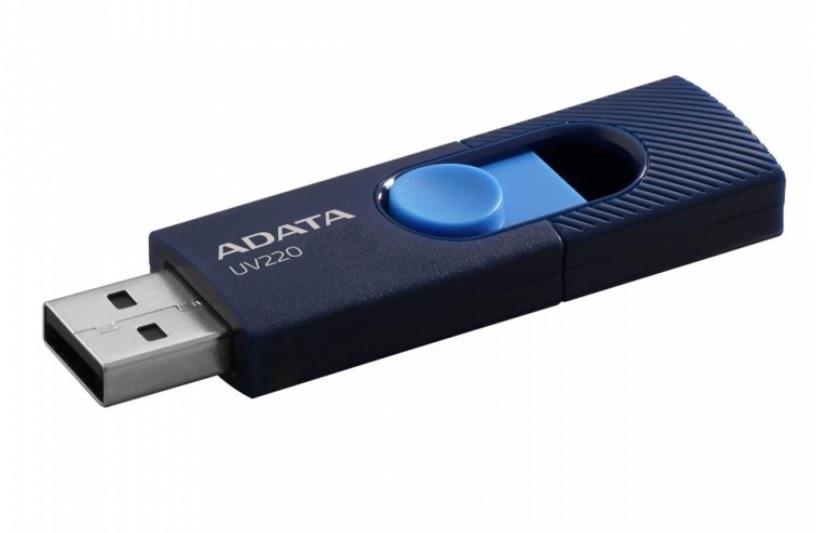 8Gb USB2.0 Flash Drive ADATA UV220, blue/navy (Read-18MB/s, Write-5MB/s), strap mount, Retractable USB