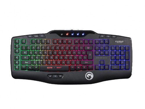MARVO "KG760", Gaming Lighting Keyboard, 120 keys, 5+3 programmable keys, 6 multimedia keys, 26 anti-gosting keys, Rainbow colors light, USB, EN layout, Black-Red Marvo KG750 - это игровая мембранная клавиатура, которая позволит вам получить совершенно новые ощущения от игр и работы за компьютером. Каждая ее клавиша рассчитана на миллионы нажатий. Помимо стандартных клавиш эта модель оснащена 15-ю дополнительными клавишами. Установка осуществляется автоматически после подключения к USB-порту ПК. Тип Cоединения Проводное Тип Устройства Клавиатура Интерфейс Подключения USB Особености Игровая, Подсветка
