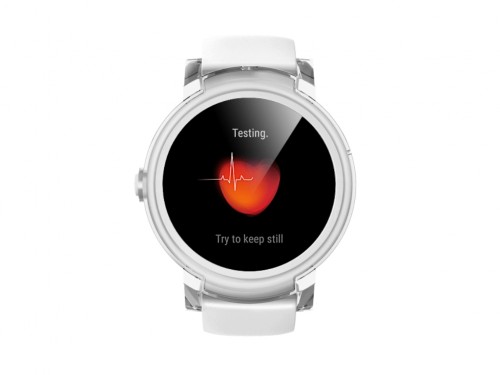 Ticwatch E by Mobvoi, Ice White, 1.4" OLED Touch Display, Wear OS by Google, 512MB/4GB, Time, Mic/Speaker for incoming calls, Heart Rate, Steps, Alarm, Distance Display, Average Daily Steps, Weather, Notifications, IP67, 48Hrs+, BT4.1, 41.5g