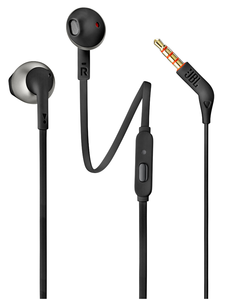 JBL T205 / Earbud headphones with microphone, Dynamic driver 12.5 mm, Frequency response 20 Hz-20 kHz, 1-button remote with microphone, JBL Pure Bass sound, Tangle-free flat cable, 3.5 mm jack, Black наушники с микрофоном вкладыши вес 14.3 г разъем mini jack 3.5 mm