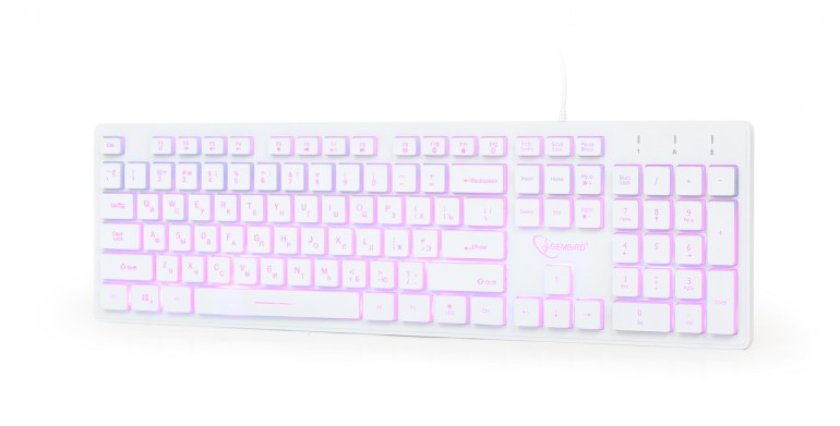 Gembird KB-UML3-01-W-RU Multimedia keyboard, 3-color backlight, 12 practical multimedia hotkeys, RU layout, USB, White Подсветка для использования в темноте Супер-тихая и комфортная печать Полезные "горячие" клавиши мультимедийных функций Полноразмерная USB клавиатура с 3х-цветной подсветкой Мягкие нажатия для комфортной печати Яркая подсветка с ручным переключением 3х цветов 12 дополнительных "горячих" клавиш для управления Интернет- и мультимедиа приложениями
