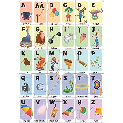 Noriel Puzzle -Alfabetul la circ Noriel Пазл 2 в 1 "Алфавит в цирке" Научитесь читать, тренировать свой ум и веселиться как в цирке! У вас есть два пазла: один с буквами алфавита, слова, начинающиеся с них и соответствующие картинки; и пазл на котором изображено цирковое шоу. В пазле с шоу есть все изображения из пазла с алфавитом. Вы можете их идентифицировать? Cодержание набора: Пазл из 15 деталей с буквами, словами и изображениями ?Пазл из 15 деталей с цирковым шоу Рекомендуемый возраст: 3 года +