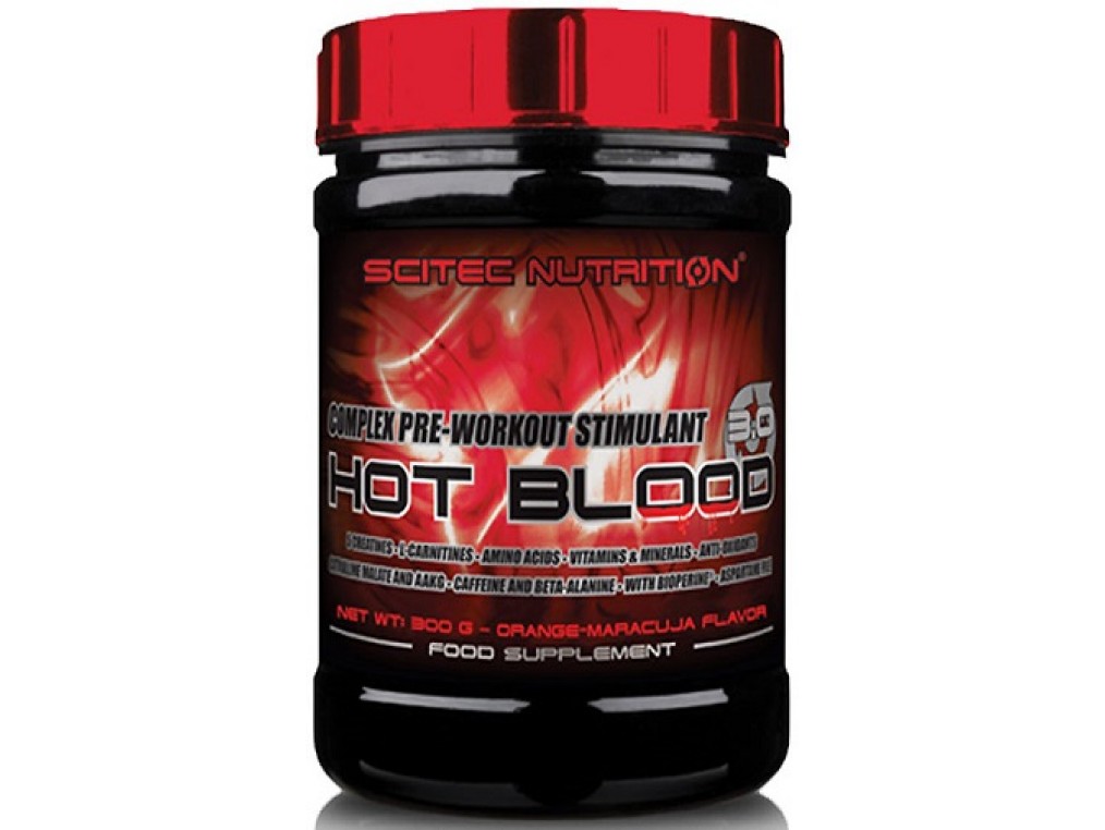 SCITEC HOT BLOOD 3.0 300 грамм Представляем вашему вниманию особо мощный энергетический предтренировочный комплекс Scitec Hot Blood 3.0. Его отличает небывалая эффективность, вы можете убедиться уже после первого скупа, что этот препарат создан для людей, любящих спорт не только за результат, но и за невероятные ощущения в зале. Причём Hot Blood купить вы можете как для занятий с отягощением, так и для кардиотренировок, в том числе высокоинтенсивных. Учитывая оптимально продуманный состав, препарат рекомендуют без опаски даже для тех видов тренинга, в которых пульс повышается до серьёзных показателей. ЧТО МОЖЕТ HOT BLOOD 3.0 Предтренировочный комплекс Hot Blood обладает следующими полезными свойствами: разгоняет кровь; увеличивает скорость метаболизма; придаёт сил; повышает уровень выносливости; помогает сконцентрироваться; улучшает мышечный пампинг. При том что на Hot Blood 3.0 цена совершенно невелика, эффект от него достоин всяческих похвал! Кроме того, этот комплекс хорошо сочетается с ВСАА и с протеиновыми коктейлями: вместе они создают отличный тандем, дающий максимальный результат. Мышцы приобретают точёную форму, уплотняются, быстро и эффективно растут. При этом вам не придётся перегружать себя и чувствовать постоянное утомление. 1 порция - 20 гр. Растворить 1 порцию в 300 - 500 мл холодной воды. Принимать за 30-45 минут до тренировки