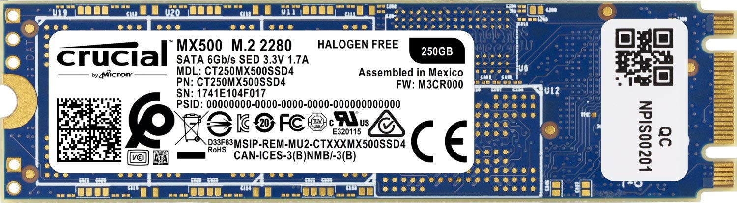 250GB SSD M.2 Type 2280 Crucial MX500 CT250MX500SSD4, Read 560MB/s, Write 510MB/s, (solid state drive intern SSD/внутрений высокоскоростной накопитель SSD) Crucial — уже давно является синонимом надежности и высокой производительности. Опыт компании в технологии процесса NAND позволяет оптимизировать производительность и долговечность твердотельных накопителей. Дикая скорость Crucial MX500 предлагает для любых решений быструю скорость чтения и записи. 3D V-NAND SSD-накопители изготавливаются с использованием инновационной архитектуры 3D V-NAND, в которой ячейки имеют цилиндрическую форму, устраняющую взаимные помехи, а увеличение емкости достигается за счет расположения их в несколько слоев — без ущерба для надежности хранения данных и скорости работы. Конструкция позволяет создать память, одновременно емкую, быструю и надежную, преодолев все основные недостатки традиционной планарной NAND-архитектуры. Новейший и самый лучший Crucial MX500 обеспечивает более быструю загрузку и работу приложений для пользователей. С низкой мощностью, малым весом и прочностью, он обладает высокоскоростной синхронной TLC NAND, передовой технологией контроллера, оптимизированным NAND управлением, и SATA 6 Гбит/с. Улучшает передачу данных в ресурсоемких приложениях (с точки зрения пропускной способности), таких как аудио и видео. Явное преимущество Твердотельные накопители обеспечивают множество преимуществ по сравнению с традиционными жесткими дисками: Пониженный расход электроэнергии Меньше тепла Бесшумность Повышенная мобильность, легкость Отсутствие движущихся частей Прочная и надежная работа даже в самых сложных условиях Эксперт в памяти Высокое качество основано на ведущих современных NAND медиа компании Micron. Страна-производитель товара Китай, Мексика Объем 250 ГБ Скорость чтения 560 МБ/с Скорость записи 510 МБ/с Формфактор M.2 Время наработки на отказ 1.8 млн часов Интерфейс SATAIII Тип ячеек памяти TLC 3D Тип накопителя Внутренний Габариты (Ш х Г х В) 80 x 22 x 3.5 мм