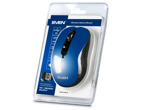 SVEN RX-560SW Wireless, Optical Mouse, 2.4GHz, Nano Receiver, 800/1200/1600dpi, 5+1(scroll wheel) Silent buttons, Switching DPI modes, Rubber scroll wheel, Blue