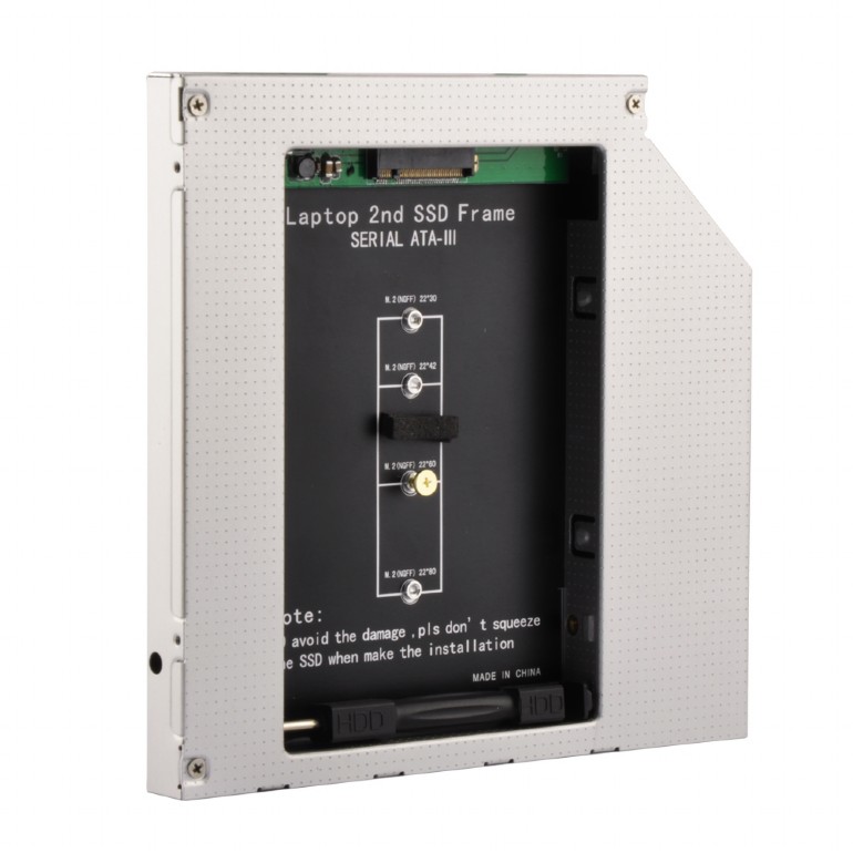 Gembird A-SATA95M2-01, Slim 5.25'' bay mounting frame for M.2 SSD memory card, 9.5 mm Адаптер для твердотельного накопителя формата M.2 на базе DVD-привода ноутбука, 9.5 мм Легко добавьте дополнительную флэш-память формата M.2 внутрь своего ноутбука Не требуется драйверов Адаптер для твердотельного накопителя формата M.2 вместо DVD-привода ноутбука Независимость от операционной системы, драйвер не требуется