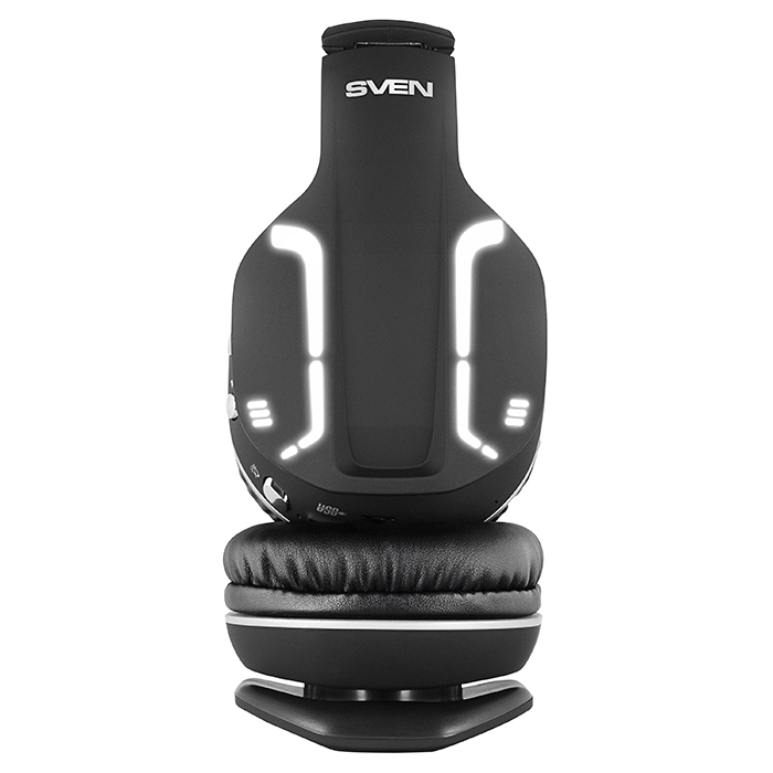 SVEN AP-B560MV, Bluetooth Headphones with microphone and LED backlight, Bluetooth v.4.1, operation time with battery up to 18 h, range up to 10 m, call acceptance, track switching control, Wired / wireless, 3.5mm (4 pin) stereo mini-jack, Black