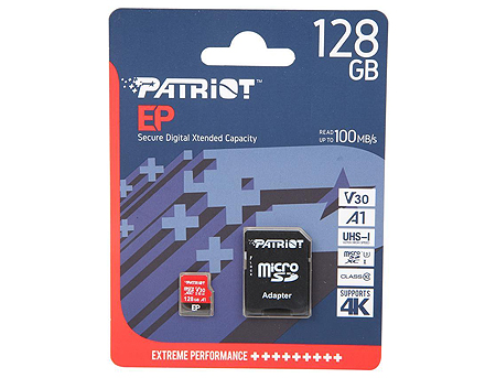 128GBPatriotEPSeriesMicroSDXCV30A1U3ExtremePerformance+AdapterMicroSD->SD,Read100MB/s,PEF128GEP31MCX(carddememorie/картапамяти)