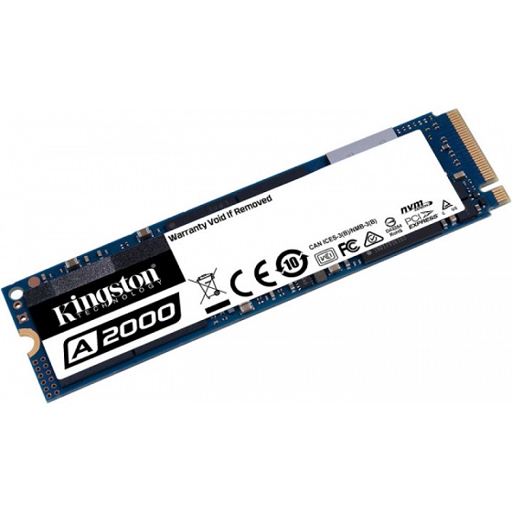 M.2 NVMe SSD 500GB Kingston A2000, Interface: PCIe3.0 x4 / NVMe1.3, M2 Type 2280 form factor, Sequential Reads 2200 MB/s, Sequential Writes 2000 MB/s, Max Random 4k Read 180,000 / Write 200,000 IOPS, SM2263EN controller, 96-layer 3D NAND TLC