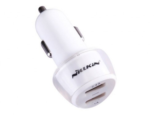 Nillkin Auto adapter, 3.4A, Jelly Input : DC 12-24V Output 1 : DC 5V 2.4A Output 2: DC 5V 1A Applicable for all smart phones and tablets. White