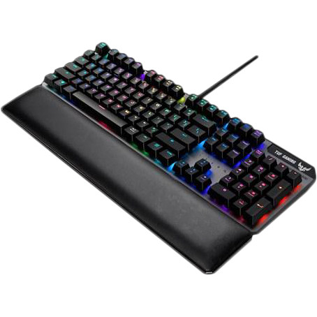 Клавиатура ASUS TUF Gaming K7, Optical, IP56, Memory-foam pad, RGB, Macros, USB проводная клавиатура интерфейс USB для настольного компьютера, игровая классическая конструкция, гибридная размеры (ШxВxГ): 439x37x131 мм вес: 988 г