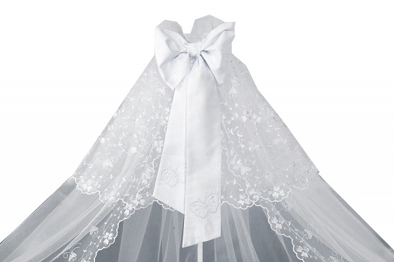 Балдахин для детской кроватки "АМЕЛИ" т.м.Perina, арт. АМ1/1-01.2 (страна пр-ва: РБ) Балдахин для детского постельного Perina Амели. Нежно белый цвет успокоит малыша, а форма придаст вид роскоши. Размер балдахина 165х450 см. Материал нейлон и хлопок. Идет в комплекте с детским постельным бельем Perina Амели (7 предметов) Описание комплекта: Шикарный комплект из элитных материалов, который очарует вас и вашего малыша. Модель «Амели» – это нежность шелка, изящество кружев, гладкость высококачественного хлопкового сатина и изумительная красота летящих бабочек – шелковых аппликаций, придающих белью сказочный вид. Бампер из четырех частей украшен кружевом, простыня – декоративными рюшами. Балдахин из вуали создаст волшебную атмосферу уюта в детской спальне. Одеяло и подушка – с натуральным наполнителем из эвкалиптового волокна, столь же нежного и легкого, как шелк. Эвкалиптовое волокно легко выдерживает многочисленные машинные стирки и не теряет после них объем и свои уникальные антиаллергенные и антибактериальные свойства.