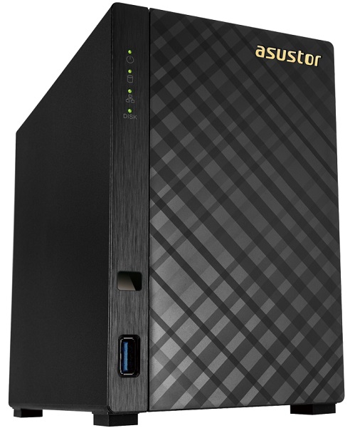 2-bay NAS Server ASUSTOR "AS3102T v2", Intel Celeron (Braswell, Dual-Core) 1.6-2.48GHz, 2GB DDR3L, 2.5"/3.5"SATAIII x2, USB3.1 x3, Gigabit LAN x2, HDMI1.4b x1, WOL, AES-NI encryption, IR Receiver, Surveillance:<25 (4 Free)