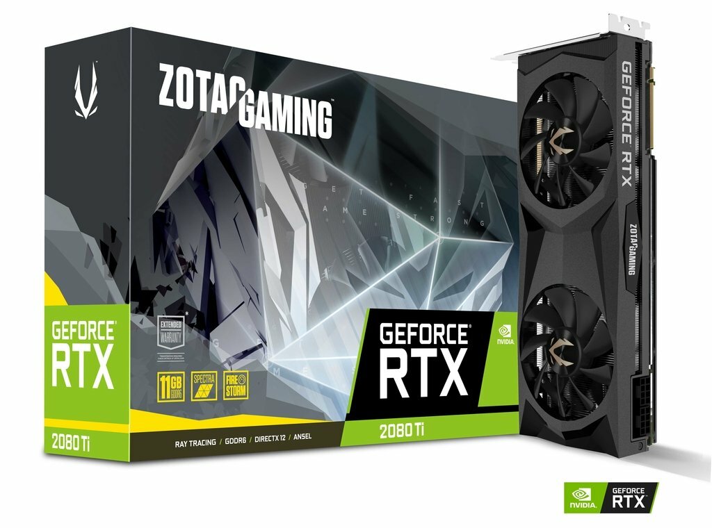 Видеокарта Zotac GeForce RTX 2080 Ti Twin Fan 11GB GDDR6, 352bit, 1545/14000Mhz, Dual Fansink, 1xHDMI, 3xDisplayPort, USB Type-C, HDCP, Freeze Fan Stop, Active Fan Control, FireStorm, OC Scanner, SPECTRA 2.0 Lighting, BackPlate, Premium Pack