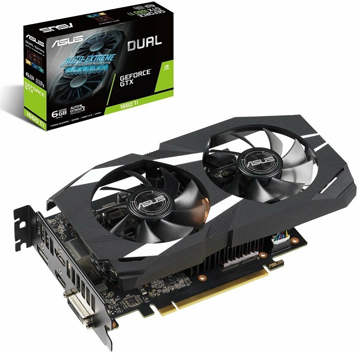 Видеокарта ASUS GTX1660Ti 6GB GDDR6 Dual EVO // GeForce® GTX 1660 Ti, 6GB GDDR6, 192 bit, Engine 1530/1800MHz (OC Mode), Memory 12002MHz, Active Cooling (2x fans), DisplayPort 1.4 *1, HDMI 2.0b *2, DVI-D *1, Power 8 Pin*1